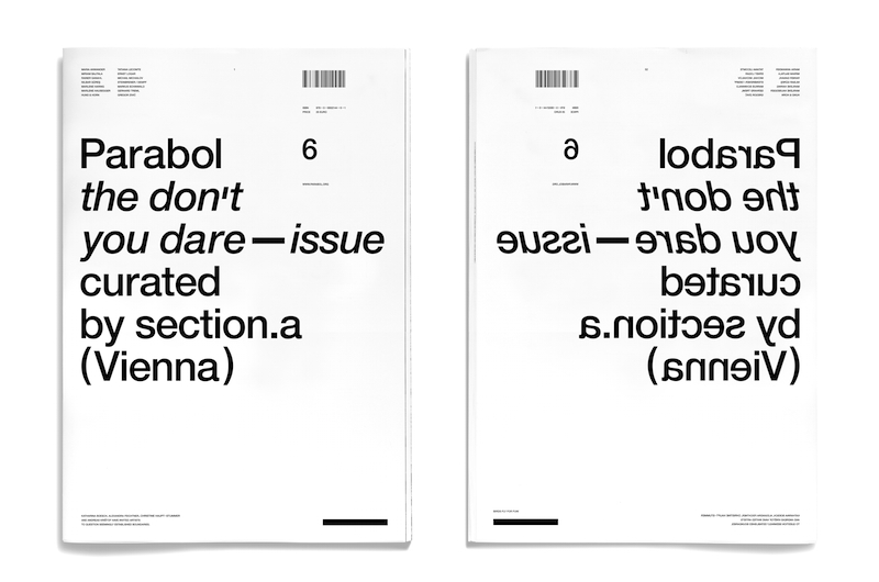 Most of the artistic contributions were specially conceived for the magazine. section.a is curating Parabol Art Magazine on its tenth anniversary, thus documenting several years of focusing in depth and passionately on contemporary artistic practices and strategies and their communication to sections of society with no affinity for art – often involving a certain »don’t you dare«.