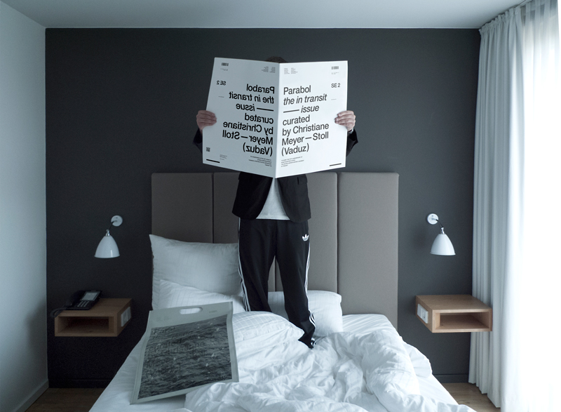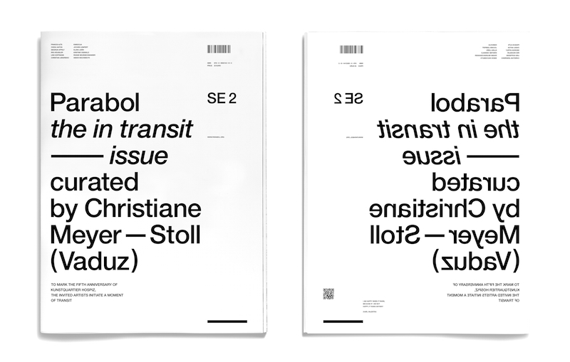 In Transit is the title of this special edition of Parabol Art Magazine. It is being published to mark the fifth anniversary of Kunstquartier Hospiz, an initiative founded by Florian and Ursula Werner in St. Christoph am Arlberg. Over the course of these five years, Florian Werner has also converted the hotel into an exhibition venue, launched an artist in residence programme combined with an art award, and established a gallery site in Bregenz. He has succeeded in making art a defining feature of his overall hotel activities and thus in turning the Arlberg Hospiz Hotel into a unique location.
